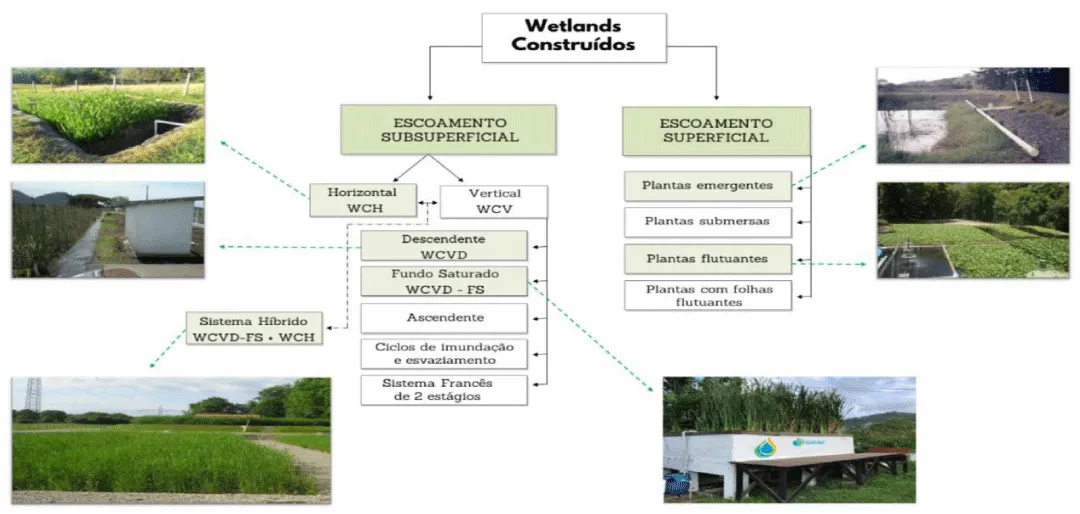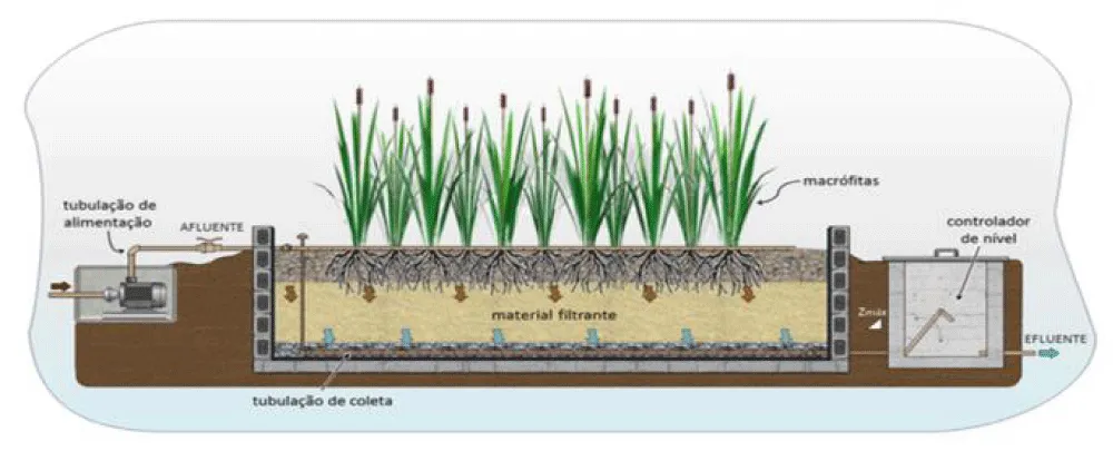 Wetlands built (WC) also known as constructed wetlands, filters planted with macrophytes or constructed wetlands, are artificial wetland systems developed to treat wastewater, mainly from sanitary sewage. These systems are designed to use aquatic plants and microorganisms to control water pollution, improving its quality. Constructed wetlands were designed to take advantage of the assimilation and conversion capacity of organic matter (carbon) and nutrients (nitrogen and phosphorus), as occurs in natural wetlands [6].